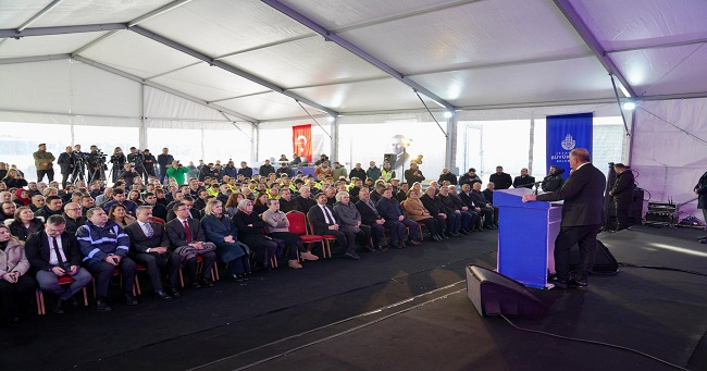 “Aslında buranın bir hikâyesi var. Hikâye, öyle 2019’da filan başlamıyor; 2010’lu, 2015’li yıllarda başlıyor. 8-10 yılda buranın geldiği yer, yüzde 33 ilerleme! Biz gelir gelmez, ‘milli servet’ dediğimiz, ‘milli kaynak’ dediğimiz, ‘milletin malı’ dediğimiz bütün projelere sahip çıktık. Birileri diyor ya, ‘Biz temel attık!’ Doğru. Allah razı olsun. Biz her zaman söylüyoruz.: Gelmiş geçmiş, İstanbul’a hizmet eden tüm belediye başkanlarımıza ve ilçe belediye başkanlarımıza, bugün dahil hizmet edenlerin hepsine teşekkür ediyoruz. Ama biz, hiçbir işi yarım bırakmadık, bırakmayız. Çıktığımız yoldan asla geri dönmeyiz. Yolumuzdan asla vazgeçmeyiz. İşte bugün tanıtımını yaptığımız bu araçların hikayesi de aslında İstanbul’un son 6 yılını gösteriyor. 2019 yılında, kredi bulunamadığı ve ödeme yapılamadığı için, bu araçların alım süreci bile başlatılmamıştı. Yani düşünün; burası kuruluyor, buraya alınacak makinenin alımı yapılmıyor. İşte ne bileyim? Metro inşaatı için proje çiziliyor ve ihalesi yapılıyor, ama hizmet başlamıyor.”