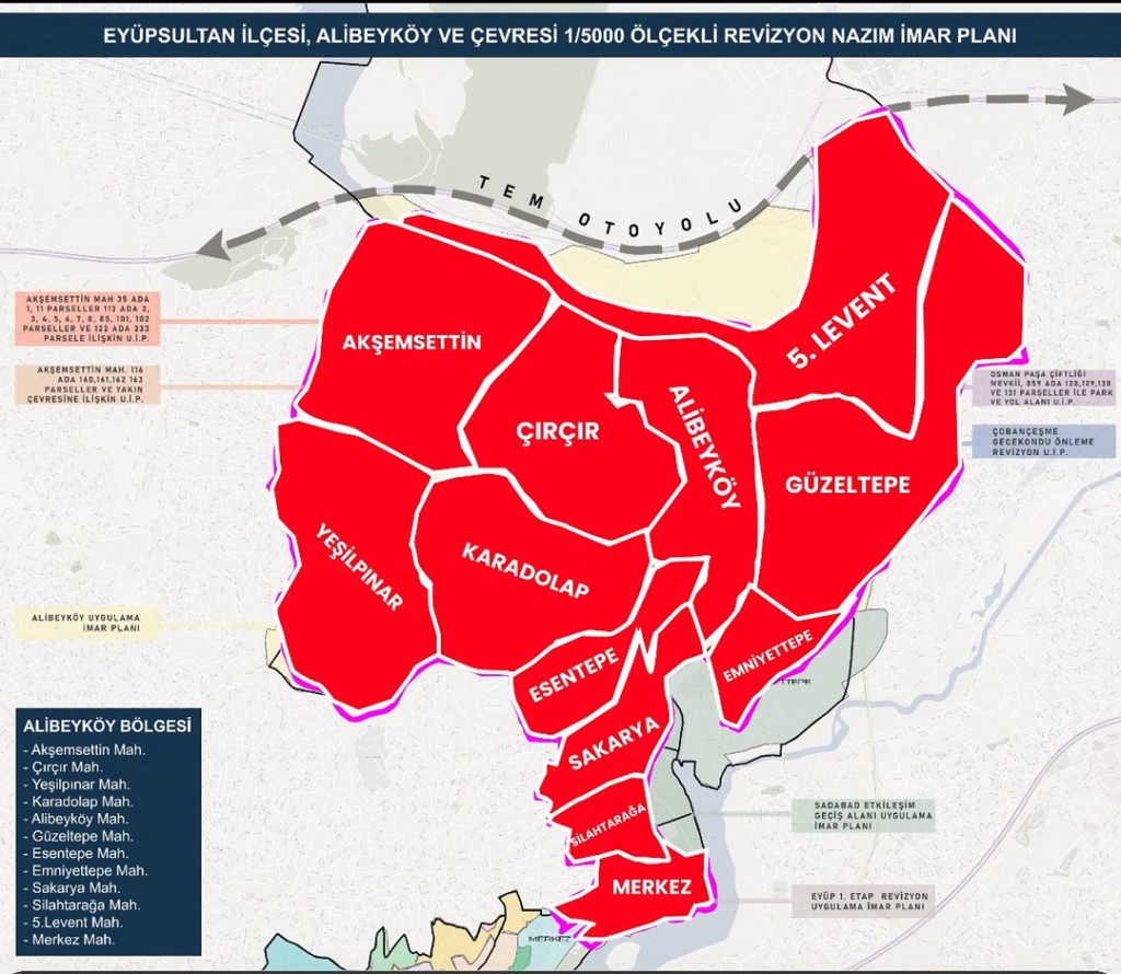 Akşemsettin, Çırçır, Alibeyköy, Güzeltepe, Yeşilpınar, Karadolap, Alibeyköy Merkez, Esentepe, Sakarya, Silahtarağa, Emniyettepe ve 5. Levent mahallelerini kapsayan imar planlarıyla ilgili bilgi veren Özmen, planın büyüklüğüne dikkat çekerek, “Bu plan, 250 bin komşumuzun yaşadığı yaklaşık 10 milyon metrekarelik bir alanı kapsıyor. Bu da neredeyse Güngören, Beyoğlu veya Bayrampaşa ilçelerinin tamamı kadar büyük bir alan demek. Eyüpsultan’da kentsel dönüşümün gerçekleşmesini sağlayacak ilk ve en büyük adımı atmış bulunuyoruz” dedi.