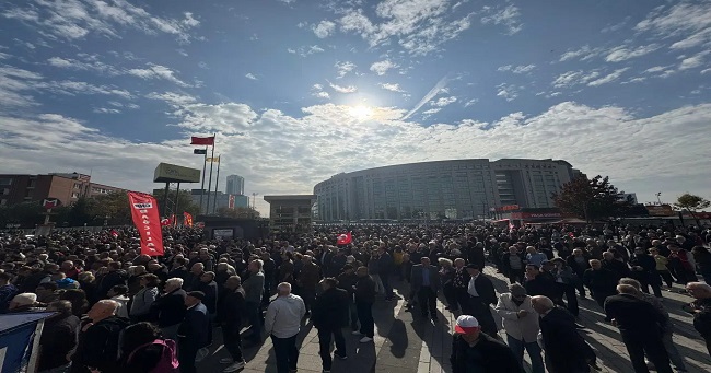 Ekrem İmamoğlu’nun ifadesinin başlamasının beklendiği sıralarda, CHP lideri Özgür Özel, Çağlayan önünde toplanan yurttaşlara otobüsün üzerinden seslendi.