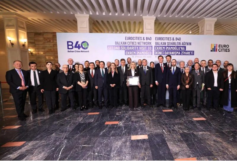 Avrupalı belediye başkanlarının da yer aldığı B40 Balkan Şehirleri Ağı ve Eurocities heyeti, İstanbul Büyükşehir Belediye (İBB) başkanı ve CHP’nin cumhurbaşkanı adayı Ekrem İmamoğlu’nun tutukluluğu nedeniyle ağustos ayındaki temasların ardından ikinci kez İstanbul’a gelerek dayanışma ziyaretinde bulundu. Avrupa’dan gelen heyet, İBB Başkanvekili Nuri Aslan ile İmamoğlu’nun eşi Dilek Kaya İmamoğlu tarafından karşılandı. Ziyaretin ardından Saraçhane’de ortak bir basın açıklaması düzenlendi. Dilek Kaya İmamoğlu, konuşmasında ziyareti “şehirler arası dayanışmanın güçlü bir ifadesi” olarak nitelendirdi. “Burada verilen mesaj yalnızca Ekrem İmamoğlu’na değil, İstanbul halkının demokratik tercihine yöneliktir” diyen İmamoğlu, desteğin kendileri için moral anlamı taşıdığını belirtti.