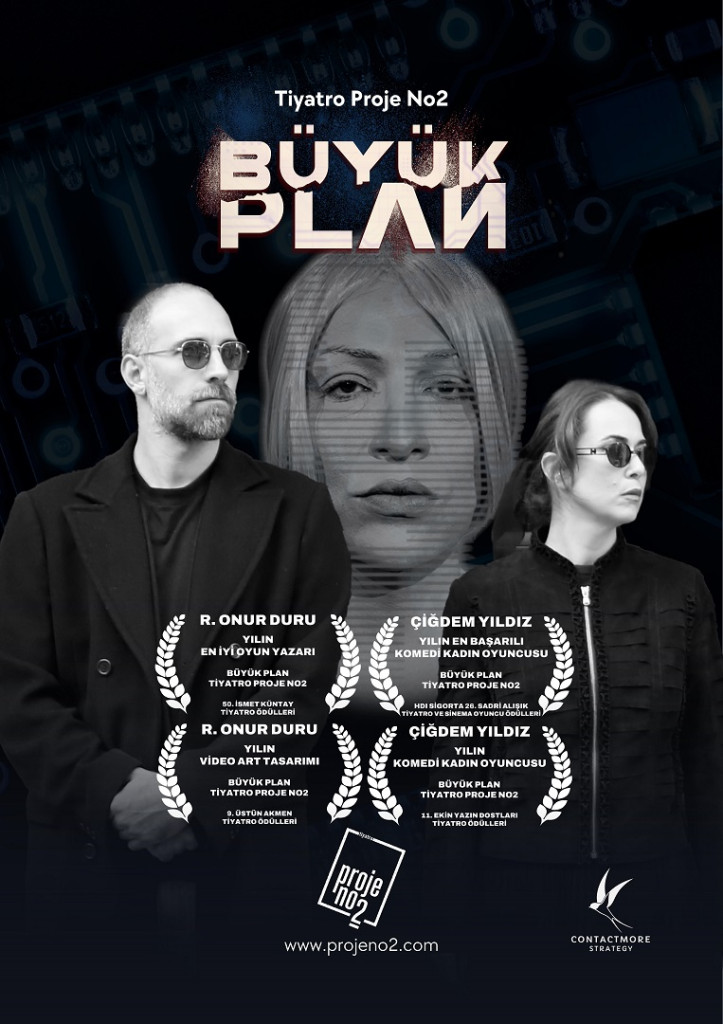 Yenilikçi ve eleştirel yapımlarıyla tanınan bir tiyatro topluluğu olan Proje No2, 2019 yılında kuruldu. Büyük Plan oyunu, 50. İsmet Küntay Tiyatro Ödülleri Yılın En İyi Oyun Yazarı, HDI Sigorta 26.Sadri Alışık Tiyatro ve Sinema Oyuncu Ödülleri, Yılın Komedi Kadın Oyuncusu, 11. Ekin Yazın Dostları Tiyatro Ödülleri Yılın Komedi Kadın Oyuncusu, 9. Üstün Akmen Tiyatro Ödülleri Yılın Video Art Tasarımı Ödülü’nü kazandı.