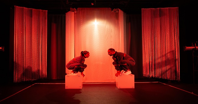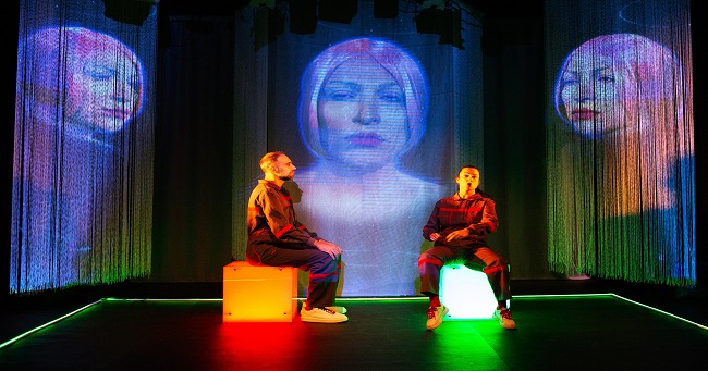 R. Onur Duru’nun yazdığı ve video-art tasarımlarını yaptığı oyun, Can Ali Çalışandemir’in proje tasarımı ve yönetmenliğinde hayat buldu. Teknoloji ve sanatın buluştuğu yapımda, video mapping ve minimalist sahne tasarımıyla izleyiciler hem görsel hem de düşünsel bir yolculuğa çıkıyor. Yeşim Alıç’ın hareket yönetimiyle zenginleşen projede, Çiğdem Yıldız ve Eray Cezayirlioğlu performanslarıyla büyülüyor. Videolarda yer alan sürpriz oyuncu ise Seyhan Arman olarak izleyicinin karşısına çıkıyor. 70 dakikalık distopik yolculuğun ışık tasarımı Akın Yılmaz’a, ses ve efekt tasarımı Katia Merdinoğlu’na ait. Oyunun yapay zeka tasarımları ise Güvenç Selekman’a ait. Tiyatronun genel koordinatörlüğünü ise Mısra Candanadam üstleniyor.