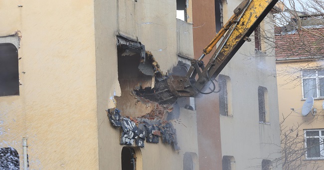Açıklamanın ardından 2 binanın yıkımı gerçekleştirildi.