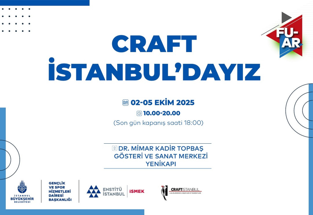 Sanatçılar, tasarımcılar ve ziyaretçiler için ilham verici bir buluşma noktası olan Craftİstanbul Uluslararası El Sanatları ve Tasarım Fuarı’nın, bu yıl 6’ncısı düzenleniyor.Dünya ülkelerinin geleneksel ve çağdaş el sanatlarını tanıtmayı amaçlayan fuar, 2-5 Ekim 2025 tarihleri arasında, Yenikapı’daki Dr. Mimar Kadir Topbaş Gösteri ve Sanat Merkezi’nde ziyaretçilerini ağırlayacak.