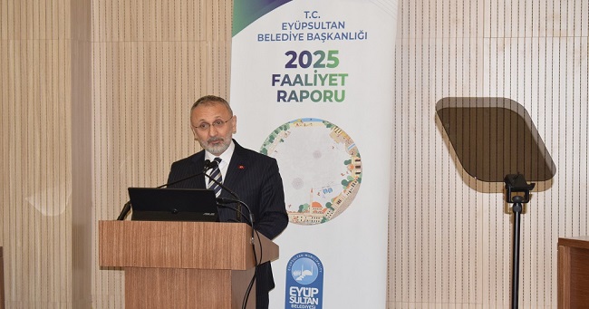 Eyüpsultan Belediye Başkanı Dr. Mithat Bülent Özmen, Eyüpsultan Belediyesi Meclis Salonu’nda düzenlenen 2026 Yılı Mart Ayı Belediye Meclis Toplantısı’nın 2. Birleşimi’nde yaptığı sunumda 2025 yılı boyunca yürütülen hizmetleri, yatırımları ve sosyal projeleri kapsayan Faaliyet Raporu’nu görseller eşliğinde kamuoyu ile paylaştı.