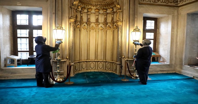 Cami içerisinde bulunan aydınlatma sistemi ve avizeler de ekipler tarafından temizlenerek bakımları yapıldı.