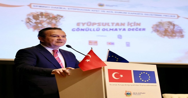 Eyüpsultan Belediye Başkanı Dr. Mithat Bülent Özmen ise konuşmasında, afetlere hazırlıkta en önemli unsurun gönüllü kültürü olduğunu belirtti. Projenin çok değerli olduğunu söyleyen Başkan Özmen, şu açıklamalarda bulundu: “Proje çok değerli, Eyüpsultan’ın acil durumlara hazırlık ve Allah korusun bir afet anında reflekslerinin güçlü olması hadisesi. Kapasiteyi güçlendireceğiz evet, kurumların koordinasyonunu sağlayacağız, bunların ötesinde en önemli olanı gönüllü kültürünü yaygınlaştıracağız. Tabi burada paydaşların sayısını artırmak çok değerli, ben o yüzden hem Avrupa Birliğini hem Birleşmiş Milletler Kalkınma Programını, Eyüpsultan derneğimizi, belediyemizin, diğer sivil toplum paydaşlarımızın sürecin içinde olmasını çok değerli buluyorum. Arkadaşlarımız sahada oldular, eğitimler verildi, farkındalık sağlandı, sürdürülebilir modeller geliştirildi. Ama burada esas değerli olan bu bir sivil katılım projesi. Her mahallede bir gönüllü ruhu ve gönüllü ekibi yaratmak. Belediye yapsın, kamu gücüyle olsun, devlet bunu yapsın anlayışından katılımcı sivil insiyatifin içinde olduğu bir sürece, vizyona geçmek zorundayız. Afetten önce riskin doğuracağı birincil felaketleri azaltmaya yönelik hazırlık açısından neredeyiz noktasında en önemli şey sivil katılım. 29 Mahallemizde gönüllü takımlar oluşturmak zorundayız. Akşemsettin, Karadolap ve Çırçır mahallelerimizde kurduk, üç mahallemizde de süreç nihayete ermek üzere ama yeter mi yetmez. Afetin ne zaman geleceği belli olmaz. Dolayısıyla sivil insiyatifi ve katılımı arttırmak çok değerli. Tabi bununla beraber sürdürülebilirlikte çok önemli. Burada önemli olan süreçlerin kişilerden bağımız olarak devam etmesi, bir sistem oturtulması. Bu manada bu projenin de çok değeri olduğunu görüyorum.”