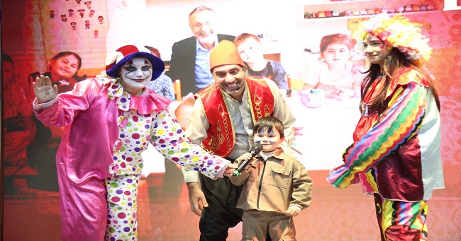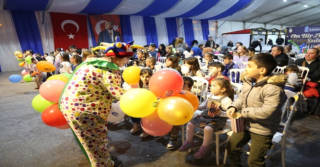 Sahne gerçekleşen animasyon, palyaço, Hacivat – Karagöz ve illüzyon gösterilerinde çocuklar kahkahalara boğuldu.