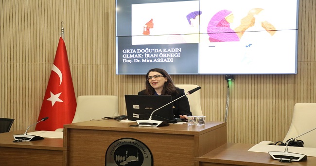 Eyüpsultan Belediyesi Meclis Salonu’nda düzenlenen seminerde Doç. Dr. Assadi “Orta Doğu’da Kadın Olmak” başlıklı bir sunum gerçekleştirdi.