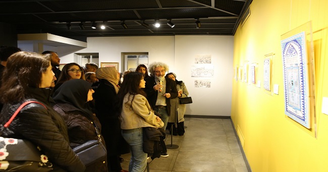 Serginin açılış konuşmasının ardından Bilir, sanatseverleri sergi alanını gezdirerek eserler hakkında tek tek bilgi verdi.