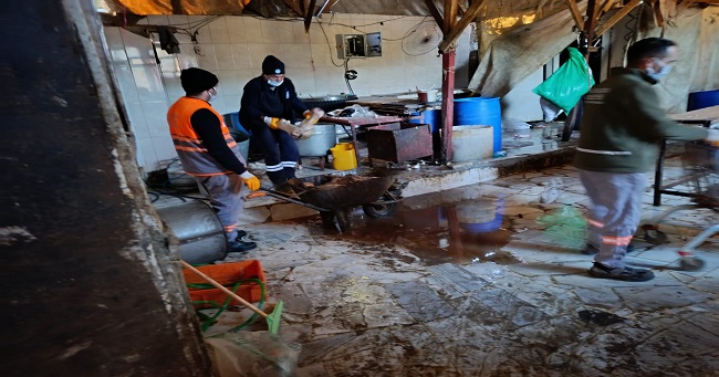 Eyüpsultan Belediyesi, toplum sağlığını korumak ve ilçede güvenli gıda ortamı oluşturmak amacıyla yürüttüğü denetim çalışmalarını aralıksız sürdürüyor. Bu kapsamda Pirinççi Mahallesi’nde ruhsatsız olarak faaliyet gösterdiği belirlenen ayak, paça temizleme yerine düzenlenen baskında, hijyenik olmayan koşullarda depolanan toplam 7,5 ton sakatata el konuldu. Ürünler, sağlığı tehdit ettiği gerekçesiyle imha edilirken işletme zabıta ekiplerince mühürlenerek tamamen kapatıldı.