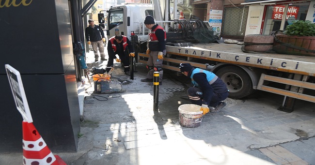 Çalışmalar kapsamında son olarak Halitpaşa Caddesi Durak Sokak üzerine parklanmaların önüne geçmek amacıyla dubalar konuldu ve yol üzerine bırakılan beton ve ahşap çiçeklikler kaldırıldı.