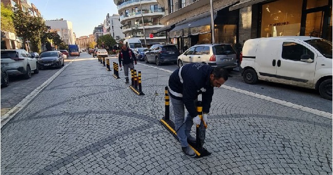 Göktürk Mahallesi Belediye Caddesi’nde trafik sirkülasyonunu olumsuz etkileyen hatalı araç parklanmalarının önüne geçmek amacıyla üçlü dubalar yerleştirildi. Cadde ikiye bölünerek trafik akışı rahatlatıldı ve yaşanan sorun giderildi.