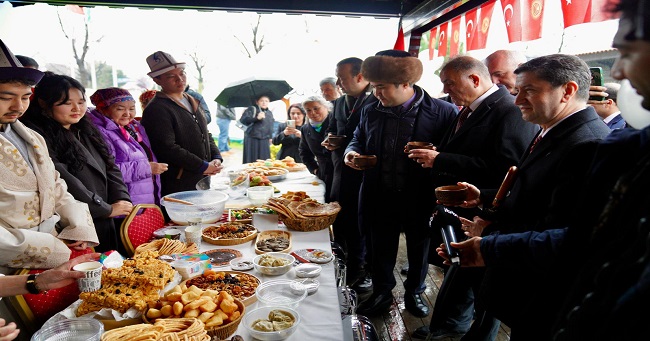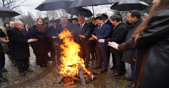 İstanbul Büyükşehir Belediyesi (İBB) Başkanvekili Nuri Aslan, İBB tarafından düzenlenen Nevruz Bayramı etkinliklerine katıldı. İlk tören, Topkapı Türk Dünyası Kültür Mahallesi’nde gerçekleşti. Burada Nuri Aslan’a İBB Genel Sekreteri Prof. Dr. Volkan Demir, İBB Genel Sekreter Yardımcısı Zeynep Neyza Akçabay ve çok sayıda vatandaş eşlik etti. Aslan ve Protokol heyeti sırasıyla Kırgız Cumhuriyeti, Azerbaycan Cumhuriyeti, Kazakistan Cumhuriyeti, Özbekistan Cumhuriyeti, Türkmenistan Cumhuriyeti, Kuzey Kıbrıs Türk Cumhuriyeti, Rusya Federasyonu Başkortostan Cumhuriyeti, Rusya Federasyonu Tataristan Cumhuriyeti’nin Kültür Evleri ve Hoca Ahmet Yesevi Otağı’nı ziyaret etti. Kültür Ev’lerinde yöresel yemek tadımı da yapan heyete; ilgili ülkenin temsilcileri kısa brifingler verdi. Kültür Ev’lerinin gezisinin ardından protokol üyeleri hep birlikte Nevruz Ateş’inin bulunduğu alanda toplu anı fotoğrafı çektirdi.
