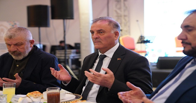 İBB Başkanvekili Nuri Aslan, bu akşam iftar yemeğinde İstanbul’daki inanç temsilcileri ile buluştu. Davete icabet ederek İstanbul’un iftar sofrasına teşrif eden konuklara teşekkür eden Aslan, İstanbul’un kendisinin bir medeniyet sofrası olduğunu ve farklılıklarımızın zenginliğiyle herkesi bir araya getirdiğini belirtti.