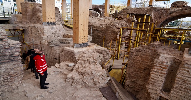İBB Başkan Vekili Nuri Aslan, İstanbul’un kültürel mirasını ve restorasyon çalışmalarını yerinde incelemek amacıyla gün boyunca Baruthane, Yedikule Gazhanesi, Bukoleon Sarayı’nda incelemelerde bulundu. Tarih, kültür ve kamusal miras odaklı ziyaretlerde Aslan, İstanbul’un geçmişine sahip çıkmanın büyük bir sorumluluk ve bir görev olduğunu vurgulayarak, “Ekrem İmamoğlu, göreve gelince arkadaşlarıyla beraber bu kıymetli yapıları, İstanbul’un belleğini koruyup kollamak, güncel şartlara hazırlamak ve gelecek nesillere aktarmak için mücadele veriyor. Hem tarihe sahip çıkıyoruz, hem tarihi mekânları restore ederek insanlarla buluşturuyor, bu mirası yarınlara taşıyoruz. Diyorlar ki ‘İBB’nin görevi tarihi eserlere sahip çıkmak mı?’ Tabii ki sahip çıkmak. 1453’te Fatih Sultan Mehmet sancağı diktiğinden beri gelen herkes, bu coğrafyadaki her şeye sahip çıkmak zorunda. Bugün de Ekrem İmamoğlu’nun yönettiği Belediye Başkanlığı, İstanbul’un bütün tarihi değerlerine ve coğrafyasına sahip çıkıyor. Geçmişimize sahip çıkacağız, bugünümüze sahip çıkacağız ve hep beraber yarınları oluşturacağız” dedi.