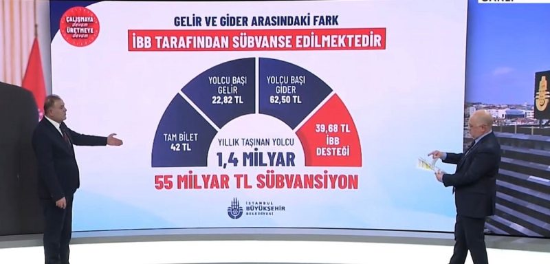 Mevcut ekonomik şartlarda bir yolcunun maliyetinin 62.5 lira olduğunu belirten Aslan, bilet gelirinin ise 22.82 lirada kaldığını söyledi. Aradaki 39.68 liralık farkın İBB bütçesinden karşılandığını ifade eden Aslan, yalnızca İETT için yılda 55 milyar liralık destek sağlandığını açıkladı.
