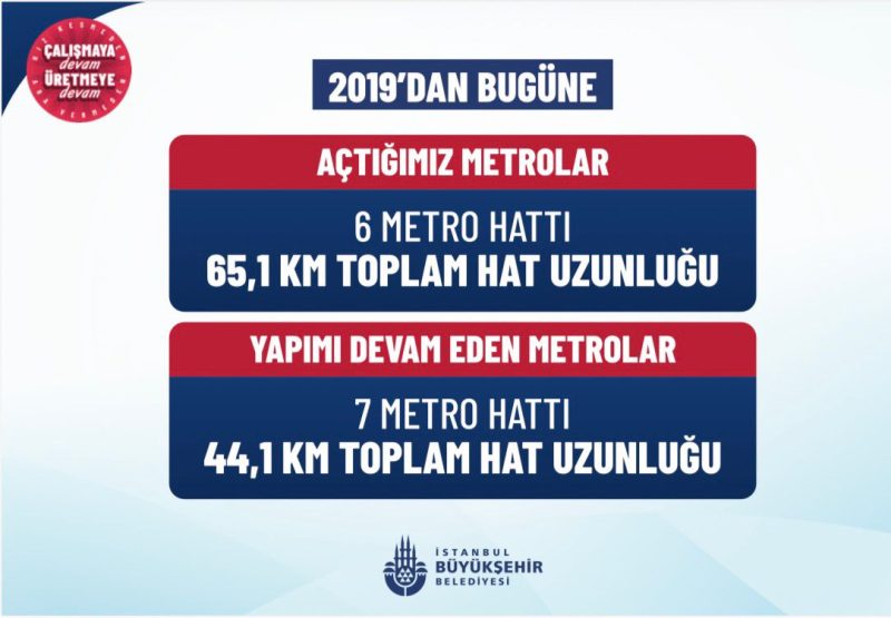 Görev süreleri boyunca 6 metro hattının açıldığını, toplam 65.1 kilometrelik yeni hattın hizmete alındığını ifade eden Aslan, halen 7 metro hattında çalışmaların sürdüğünü söyledi.