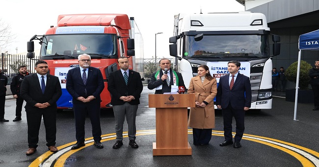 İstanbul Büyükşehir Belediye (İBB) Meclisi’nin oy birliğiyle aldığı karar uyarınca hazırlanan yardım TIR’ları, Türk Kızılay’ı aracılığıyla Gazze’ye ulaştırılmak üzere uğurlandı. Uğurlama töreninde konuşan İBB Başkanvekili Nuri Aslan, “Onlarca yıldır bir halk ağır zulüm altında yaşıyor. 2023 yılı Ekim ayından itibaren bu zulüm, bir soykırıma dönüştü. Filistin ve Gazze’de yaşananlar, çağımızın en acı ve en sarsıcı vahşetlerinden biri haline geldi. Bebekler, çocuklar, kadınlar ve masum siviller acımasız saldırılarla hayattan koparıldı. Sadece Gazzeliler değil, tüm insanlık can çekişti. Sadece Filistin değil, hepimizin kalbi yaralandı. İstanbul halkı ve İstanbul Büyükşehir Belediyesi olarak, bu vahşete asla sessiz kalmadık, kalmayız, kalmayacağız,” dedi.