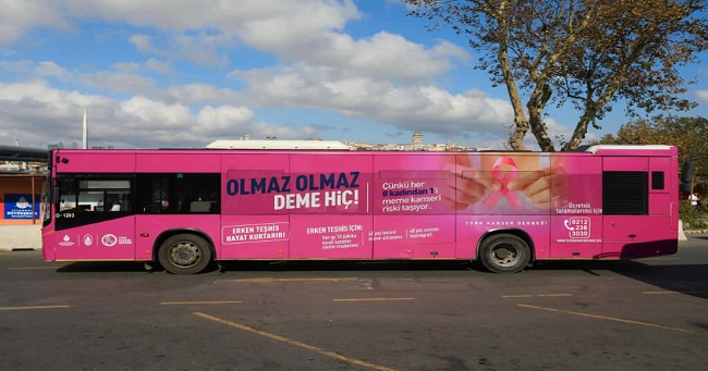 İBB bağlı kuruluşlarından İETT, “Meme Kanseri Bilinçlendirme ve Farkındalık Ayı” kapsamında farkındalığı artırmak için özel bir çalışma başlattı. Bu kapsamda farkındalığı artırmak amacıyla özel tasarlanan bir otobüs seferlere başladı.