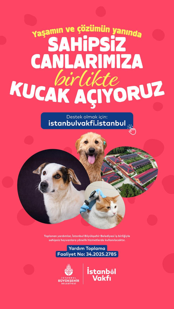 İstanbul Büyükşehir Belediyesi (İBB) ve İstanbul Vakfı, sahipsiz hayvanların yaşam koşullarını iyileştirmek ve onların sıcak yuvalara kavuşmalarını sağlamak amacıyla anlamlı bir dayanışma kampanyası başlattı. İstanbul halkının desteğiyle hayata geçirilecek bu kampanya, sokakta yaşam mücadelesi veren can dostlarımızın güvenli, sağlıklı ve sevgi dolu bir ortama kavuşmalarını hedefliyor. Bakımevlerinde misafir edilen hayvanların beslenmeden sağlığa, barınmadan sahiplendirmeye kadar tüm ihtiyaçlarının karşılanması için toplumsal bir seferberlik çağrısı yapılıyor.