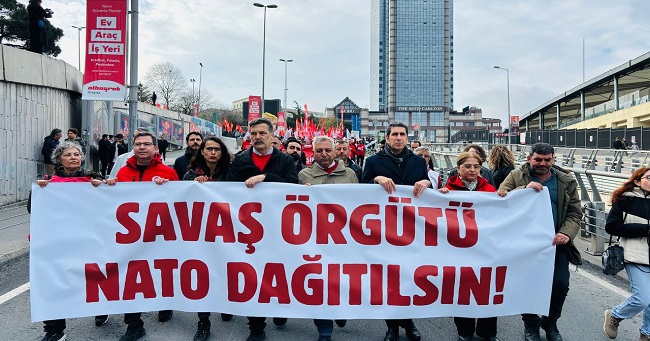 Biz bu ülkenin yurtseverleri, devrimcileri ve onurlu insanları olarak bu toprakların yeni katliamlara, yeni savaşlara alet edilmesine asla izin vermeyeceğiz. Çünkü biliyoruz ki NATO güçlenirse dünyanın her yerinde işçiler ve emekçiler kaybeder.”