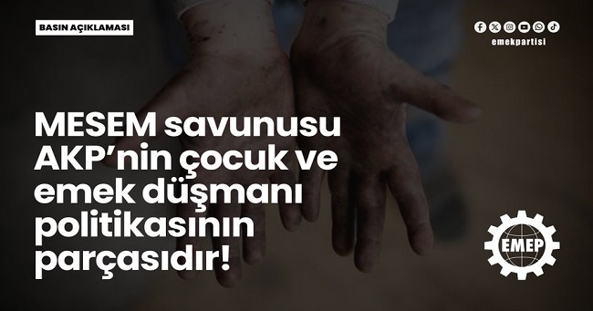 Emek Partisi olarak bir kez daha ifade ediyoruz: MESEM’ler kapatılmalı, çocuk işçiliğine son verilmeli, çocukların yaşamı ve geleceği patronların kâr hırsına teslim edilmemelidir. Mesleki eğitimdeki her çocuğa burs verilmeli. Çocuk ölümleri kader değil, bu politikaların sonucudur.