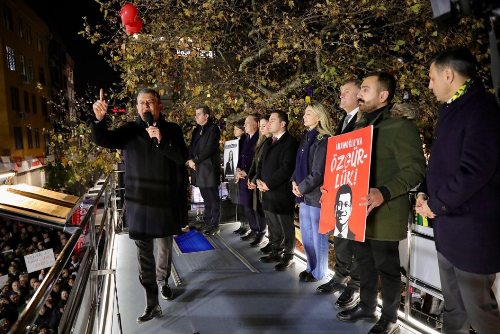 “Son söz. 2026’ya girerken Ekrem Başkan Silivri’de, biz meydanlardayız. İki milyon Cumhuriyet Halk Partisi üyesi 15,5 milyon 23 Mart‘ta oy kullanan Ekrem Başkan’ı aday gösterenler ve aramıza katılmak isteyen herkes 2026 yılında partinin seçim kampanyasında görev almaya davetlidir. Ekrem Başkan yerine Cumhurbaşkanı adayı olmaya var mısınız? Var mısınız? Kapı kapı gezip, bu iktidarın yapmadıklarını ve bizim yapacaklarımızı anlatmaya hazır mısınız? Köy köy dolaşmaya, fabrika fabrika örgütlemeye, meydan meydan, sokak sokak koşmaya, çağrıldığın yere gitmeye ve mutlaka birlikte örgütlü mücadeleye hazır mısınız? Ben 2026’ya büyük bir umut, büyük bir kararlılık ve büyük bir cesaretle giriyorum. Gücümü, cesaretimi sadece ve sadece sizlerden alıyorum. Ben size güveniyorum, size inanıyorum. Hep birlikte bu yolu yürüyecek miyiz? Yürüyecek miyiz? Yürüyecek miyiz? Haydi o zaman, yolunuz açık olsun, yeni yıl gelsin, sefa ile gelsin. Hep birlikte iktidara yürüyelim. Yürüyelim arkadaşlar.”