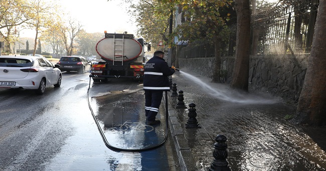 İlçenin tüm mahallelerinde titizlikle yürütülen çalışmalar kapsamında cadde ve sokaklar süpürülüyor, yıkanıyor, çöp konteynerleri yıkanarak dezenfekte ediliyor, molozlar ve atıklar toplanıyor.