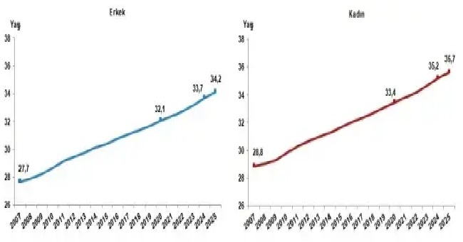 Türkiye’de 2024 yılında 34,4 olan ortanca yaş, 2025 yılında 34,9’a yükseldi. Cinsiyete göre incelendiğinde, ortanca yaşın erkeklerde 33,7’den 34,2’ye, kadınlarda ise 35,2’den 35,7’ye yükseldiği görüldü.